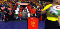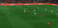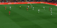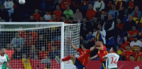比赛进行到第35分钟时,勒诺尔芒头球摆渡,梅里诺紧接着头球接力破门!西班牙队1-0领先保加利亚队